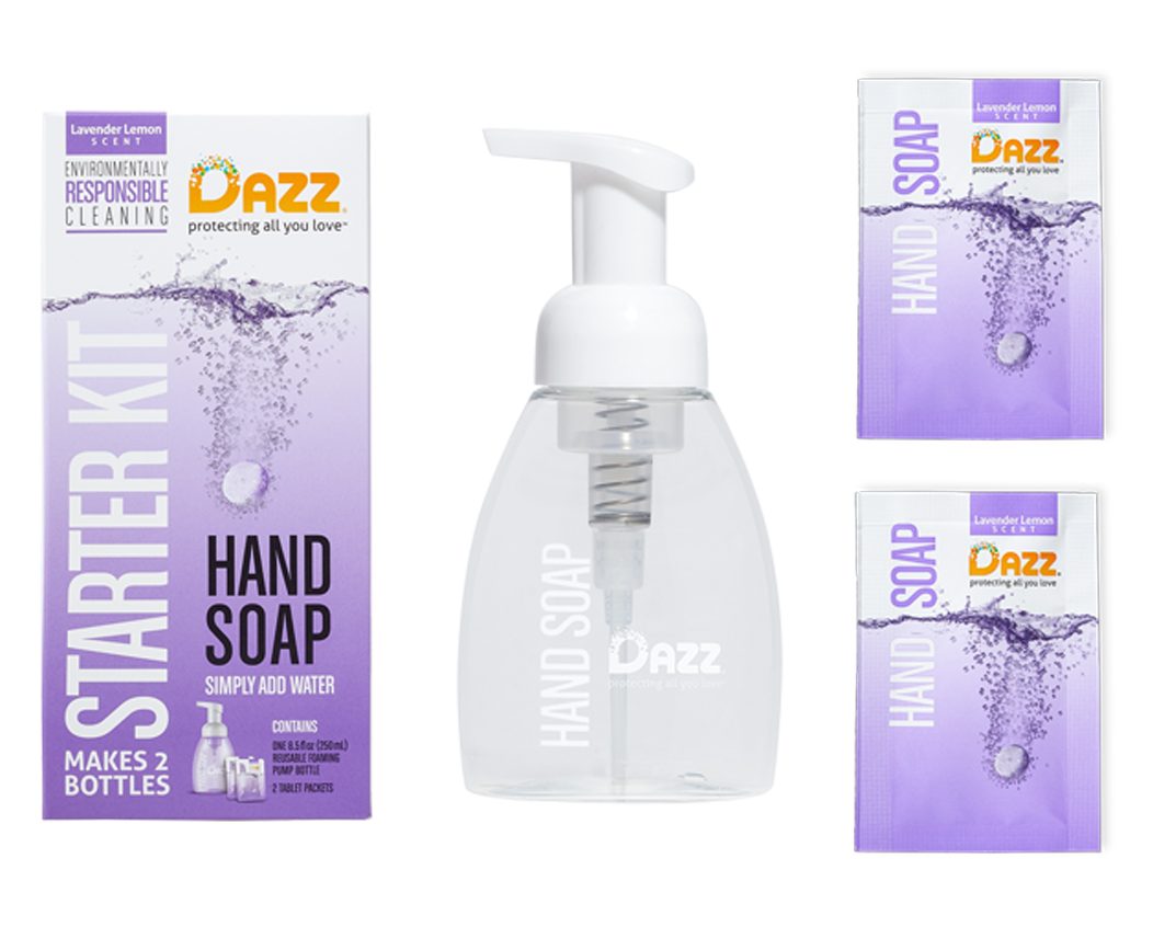 Comienza tu viaje con Dazz con nuestro kit de inicio. Disfrute de una experiencia excepcional de lavado de manos con nuestro nuevo jabón de manos espumante. Nuestros limpiadores patentados a base de vegetales crean una rica espuma que limpia a fondo y enjuaga por completo. Nuestros aromas naturales son refrescantes. ligeros y no abrumadores.